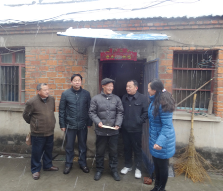 1月29日,天空中飄著鵝毛大雪,市委組織部副部長、老干部局局長王善喜、副局長蘇士勇、成本富帶領有關人員到賈塘社區慰問貧困老黨員。局領導一行人在社區負責人的帶領下首先來到85歲的老黨員潘守玉家中,了解他家的家庭及子女就業情況,隨后來到生病的老黨員趙克謙家中,對他的病情非常關心,詳細詢問了他的情況。當天上午共冒雪走訪慰問了7名貧困老黨員,每到一戶老黨員家中,局領導都與他們促膝談心、噓寒問暖,詳細了解老黨員的身體狀況和生活現狀,并送去了慰問金,老人們都非常感動,潘守喜老人說“沒想到你們這么大雪天還到我家里來,你們送的不只是慰問金,而是黨的溫暖”。(市委老干部局 邵群 )