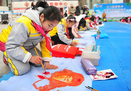 讓我們的舉止更文明——開展“學雷鋒精神—爭當巢湖文明小使者”現場繪畫活動。3月4日上午在城區中心廣場由小學生們圍繞“創建文明城市”、“爭當志愿小使者”等主題進行現場繪畫。40多名小學生揮動自己手中的畫筆,用一幅幅繪畫作品表達了他們對文明城市創建的熱情。