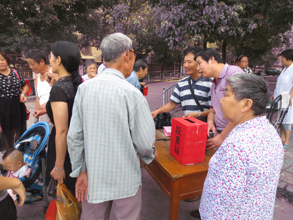這次興巢社區的志愿者也主動參與到選舉工作中,從早上六點鐘開始,他們就和社區的工作人員一起忙碌了起來,在社區5個點設立投票中心,擺出投票箱,靜候居民投票選舉。為年紀大、不便寫字的居民代寫選票,忙得不亦樂乎。選舉現場,令人感動的事情很多很多,現居住在社區的94歲高齡李老特地來參加選舉活動,投上寶貴的一票。市民政局領導、鳳凰山街道指導組領導還深入現場對居委會選舉活動進行督察指導。