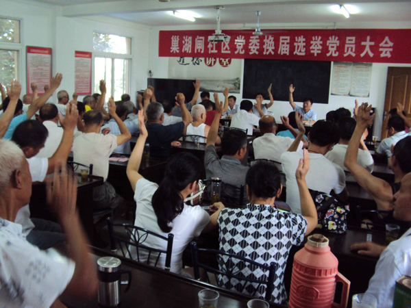 8月8日,天河街道巢湖閘社區在會議室隆重召開黨員大會,選舉新一屆黨委班子。