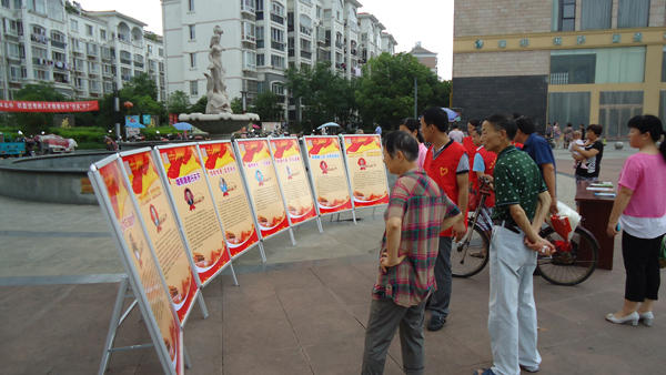 8月21日,臥牛山街道健康西路社區在信泰國際花園志愿服務廣場,舉辦巢湖市道德模范世紀風采錄廣場展覽,廣大居民踴躍前來參觀8名巢湖市巢湖市道德模范的事跡展覽,宣傳收到了很大反響,社區居民從此次展覽中知道了張秉柱、陳天泉等8名同志被評為巢湖市好人、第三屆巢湖市、合肥市道德模范,巢湖市有胡文傳、徐輝、周傳全獲得了中國好人、第三屆、第四屆全國道德模范和第五屆全國道德模范候選人,廣大居民紛紛表示要向道德模范學習,為巢湖市爭創全國文明城市獻出一份力量。(健康西路社區 范家松)