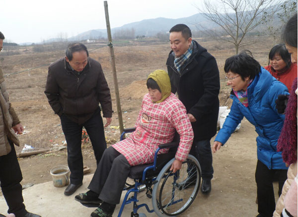 家住廟崗鄉方集村的李其英,身患小兒麻痹癥,但因家庭貧困,至今沒有買輪椅。此次市婦聯牽線搭橋,送來了從美國寄來的量身定制的輪椅,工作人員現場把輪椅組裝好,并耐心講解使用方法,李其英高興的熱淚盈眶,連聲道謝。