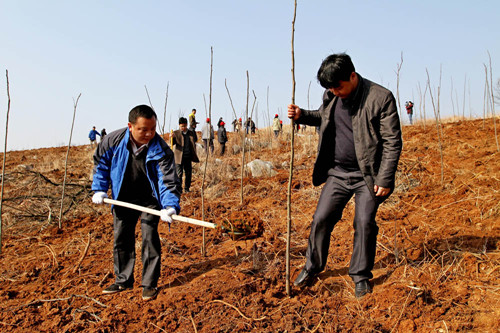 義務(wù)植樹,既綠化了荒山,也培養(yǎng)了全體黨員干部的環(huán)保意識。夏閣鎮(zhèn)的黨員志愿者們以自己的實際行動倡導(dǎo)綠色,倡導(dǎo)低碳生活。(王戴君)