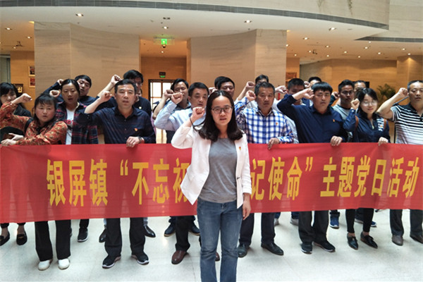 在紀念館一樓大廳,面對鮮紅的黨旗,鎮組織委員帶領全體黨員一起重溫入黨誓詞,教育全體黨員牢記入黨誓詞,不忘初心,牢記使命,充分發揮好共產黨員先鋒模范作用,以飽滿的熱情投入到黨和人民的事業中去。
