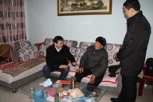 在困難黨員翟清保家里,黃克忠詳細(xì)詢問了其愛人的病情及生產(chǎn)生活情況,并送上慰問金,叮囑老人一定好好養(yǎng)病,早日康復(fù)。伍賈社區(qū)的百歲壽星劉友創(chuàng)聽說領(lǐng)導(dǎo)要來看望他,早早地就起床并穿戴整齊在家等候,當(dāng)他看到黃部長一行后,非常激動,臉上洋溢著幸福的笑容。黃克忠為其送上慰問金,并頒發(fā)“百歲壽星”牌匾,祝福老人家健康長壽,闔家幸福。在困難群眾徐朝蘭家,她指著身患?xì)埣驳膬鹤诱f:“如果沒有黨和政府的長期關(guān)懷,真不知道以后該怎么過”。在建國前老黨員朱樂發(fā)家里,老人激動地說:“這么多年了,感謝你們來看望我,黨和國家還沒有忘記我們!”