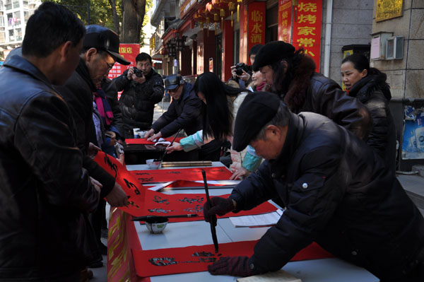 黨員書法家進(jìn)社區(qū)送春聯(lián)群眾歡歡喜喜迎新年[圖]