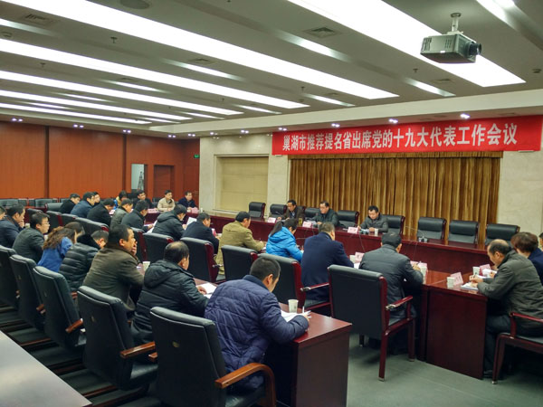 會議指出,黨的十八屆六中全會決定,黨的第十九次全國代表大會于2017年下半年召開,做好代表的推薦提名工作,是開好十九大的前提和重要基礎,是加強和規范黨內政治生活的重要實踐,是全面貫徹省、合肥市、巢湖市黨代會精神的重要契機。