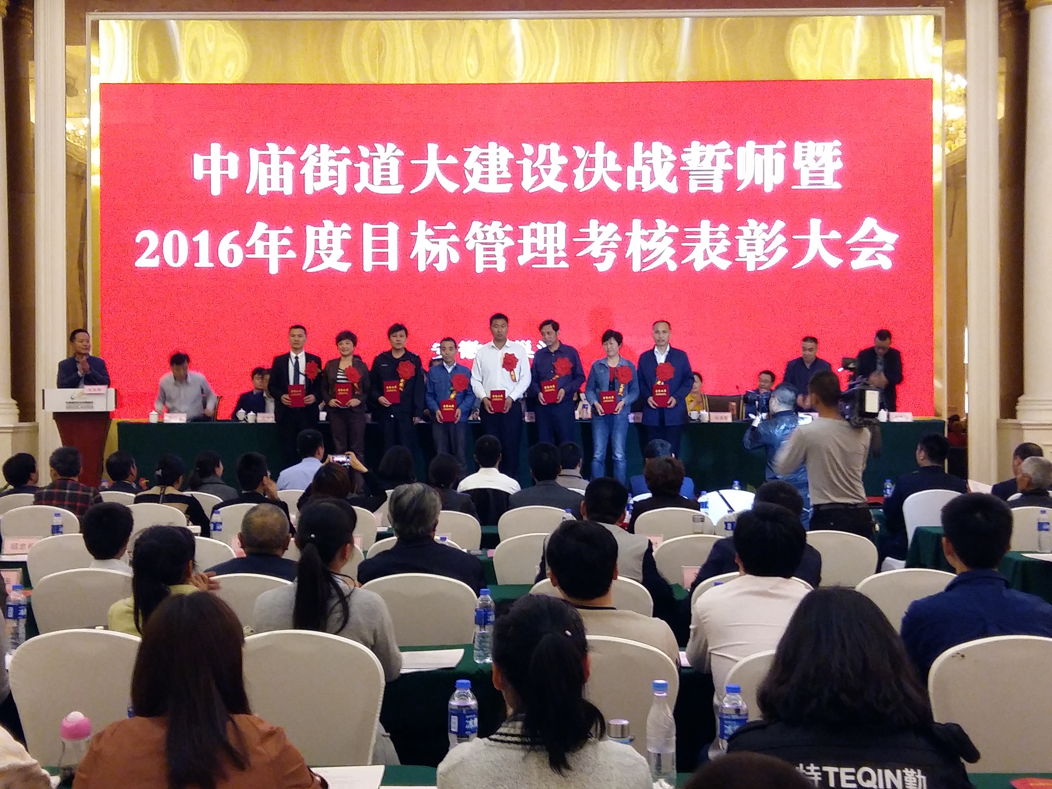 中廟街道隆重召開大建設決戰誓師暨2016年度目標管理考核表彰大會