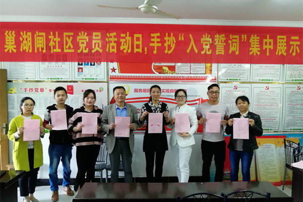 天河街道巢湖閘社區在黨員活動日開展手抄“入黨誓詞”集中展示活動