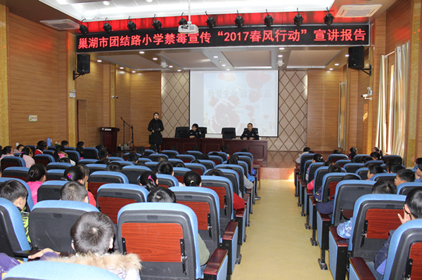 (四)黨建工作與文明創建相結合,提升公安形象。禁毒大隊黨支部扎實開展多種形式的創建活動,宣傳道德模范、身邊好人,弘揚正義,傳播正能量;做好文明傳播志愿活動,弘揚美德,鞭策丑惡。一是開展禁毒宣傳進學校活動。為進一步增強我市青少年抵制毒品的意識,提高自我保護能力,禁毒大隊黨支部結合工作實際,圍繞“創建文明城市開展禁毒宣傳”這一主題,走進市城北、團結路等小學開展“禁毒知識一堂課”校園行活動,扎實推進青少年毒品預防教育“6.27”工程。二是開展學雷鋒樹新風活動。禁毒大隊黨支部學雷鋒志愿服務隊利用午休時間開展“學雷鋒見行動”志愿活動,以實際行動弘揚正能量,向社會傳播公安“好聲音”。志愿服務隊來到巢湖火車站,先后為車站旅客提供咨詢、購票、提包裹等各類義務服務,隨后又以發放宣傳單、宣傳冊等形式,在人流量密集的候車廳開展禁毒宣傳活動。活動受到了群眾一致贊揚,同時有效提高了群眾的毒品防范意識,充分展示我局公安民警志愿服務工作的新形象,支部黨員民警用實際行動和無私奉獻的精神,為社會帶來了一份和諧和關愛,更為我們的城市添了一份綠,獻了一份心,盡了一份責,產生了良好的社會效果。