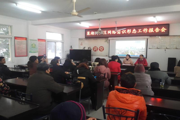 巢湖閘社區(qū)于1月17日上午,在社區(qū)會議室召開網(wǎng)絡(luò)意識形態(tài)報告會,會議由黨委書記趙迎菊主持,并邀請?zhí)旌咏值勒ㄎ瘯涥惡昵賲⒓印?/span>