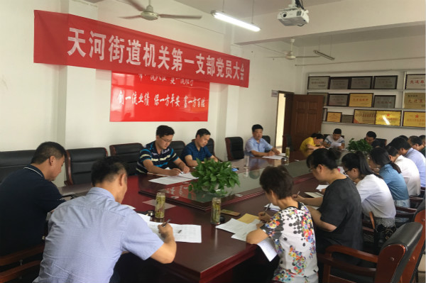 2019年6月4日上午,天河街道機關第一支部組織全體黨員召開支部黨員大會,由支部書記靳海濱主持,機關第一支部全體黨員參加會議。