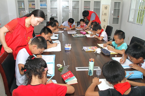 近日,在夏閣鎮(zhèn)“元通村小創(chuàng)客志愿學堂”,13位孩子在兩位志愿者老師的輔導下,認真做著功課,其中,大部分為留守兒童。
