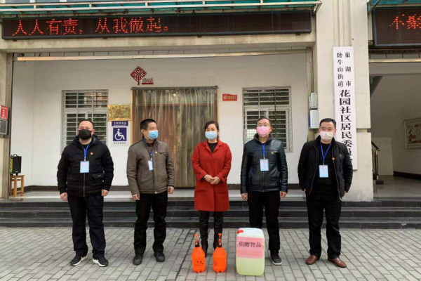 連日來,臥牛山街道花園社區工作人員深入到小區、自然村開展新型冠狀病毒感染的肺炎疫情防控入戶登記排查,在得知社區疫情防控物資消耗很大、非常緊缺的情況后,2020年2月5日上午,非公企業三口人家負責人、巢湖市政協委員孫銀屏女士主動向花園社區捐贈50升消毒液和兩個噴壺。
