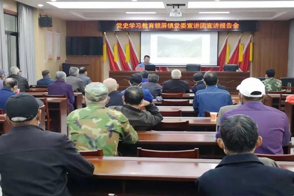 黨史學(xué)習(xí)教育銀屏鎮(zhèn)黨委宣講團(tuán)成員,鎮(zhèn)黨委委員、宣傳委員、統(tǒng)戰(zhàn)委員江川同志作了《中國共產(chǎn)黨百年輝煌》專題宣講報告。江川以中國共產(chǎn)黨在新民主主義革命時期完成救國大業(yè)、在社會主義革命和建設(shè)時期完成興國大業(yè)、在改革開放和社會主義現(xiàn)代化建設(shè)新時期推進(jìn)富國大業(yè)、在中國特色社會主義新時代推進(jìn)并將在本世紀(jì)中葉實(shí)現(xiàn)強(qiáng)國大業(yè)為主線,把黨的百年歷程與重大歷史事件、黨的重要會議等緊密結(jié)合,回顧了中國共產(chǎn)黨百年不懈奮斗史、理論探索史和自身建設(shè)史,深入淺出闡述了中國共產(chǎn)黨百年經(jīng)歷的四個歷史時期和輝煌成就。
