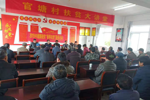 沃田桑景晚,平野菜花香。3月14日上午,槐林鎮官塘村開展扶貧政策宣講活動,重點宣傳2019年健康脫貧政策,駐村扶貧工作隊邀請鎮衛生院副院長牛俊、鎮老齡委主任陳昌根、村衛生室室長謝官徽參加,村總支書記、主任魏志飛主持。