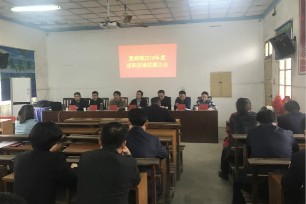 近日,夏閣鎮召開2018年度述職述德述廉大會,會議由鎮黨委書記翟亞兵主持,市編辦主任錢進等考核組6人到會指導。夏閣鎮全體在編在崗人員、基層站所負責人、村(社區)黨委(總支)書記、第一書記等72人參加會議。