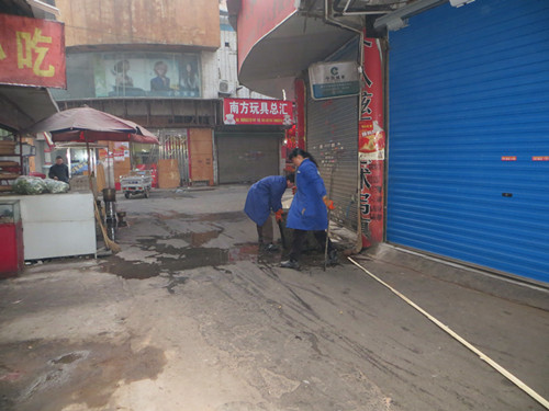 社區(qū)得知這一情況后,立即向街道創(chuàng)建辦匯報(bào)并聯(lián)系了環(huán)衛(wèi)處。,為了讓居民和經(jīng)營(yíng)戶(hù)們?cè)缛諗[脫又臭又臟環(huán)境下的困擾,過(guò)一個(gè)舒心的春節(jié),1月22日上午,社區(qū)工作人員以及環(huán)衛(wèi)處專(zhuān)業(yè)疏通人員,對(duì)南巢商業(yè)街一街幾個(gè)堵塞的窨井下水管道進(jìn)行了疏通,經(jīng)過(guò)一個(gè)多小時(shí)的努力終于使影響居民和經(jīng)營(yíng)戶(hù)居住經(jīng)營(yíng)的環(huán)境衛(wèi)生問(wèn)題及時(shí)得到了解決。