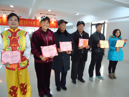 上述各項工作中都離不開社區(qū)廣大志愿者們,在社區(qū)工作開展中,所有的志愿者都盡職盡責、無私奉獻,充分體現(xiàn)了“關愛他人、關愛社會、關愛自然”的志愿服務精神,得到了上級各部門的表揚和肯定,得到了社區(qū)廣大居民的認可,涌現(xiàn)了一批優(yōu)秀的志愿服務團隊和志愿者。為獎勵他們的突出表現(xiàn),以此帶動更多的居民參與到社區(qū)志愿服務活動中,社區(qū)在2014年元旦文藝匯演中,授予俏牡丹舞蹈隊、東方梅苑藝術團明星志愿服務團隊,授予陳華金、程明清明星志愿者,并現(xiàn)場對他們進行了表彰。(肖安斌)