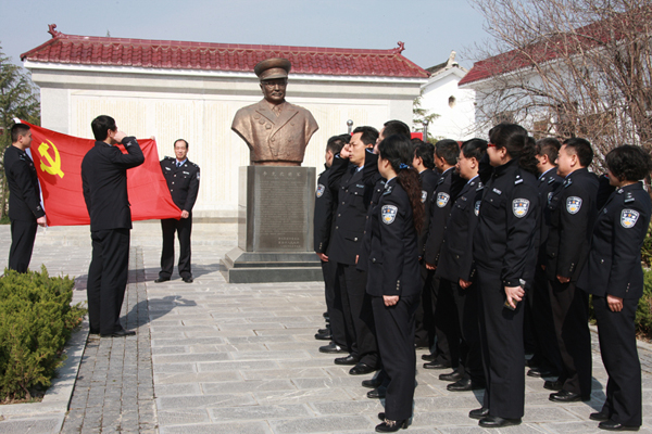 在李克農故居,民警代表們重溫了入黨宣誓。講解員細致講解了李克農長期在特殊戰線上以最強的斗志和靈活的工作方法為革命事業出生入死、屢建奇功的光榮事跡,鞭策我們和平年代公安民警要深知肩負的重擔,進一步樹立為公安工作奉獻畢生的信念。